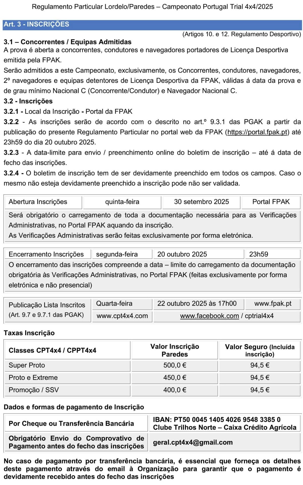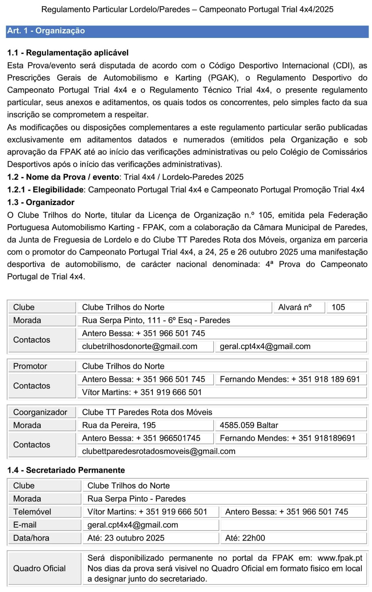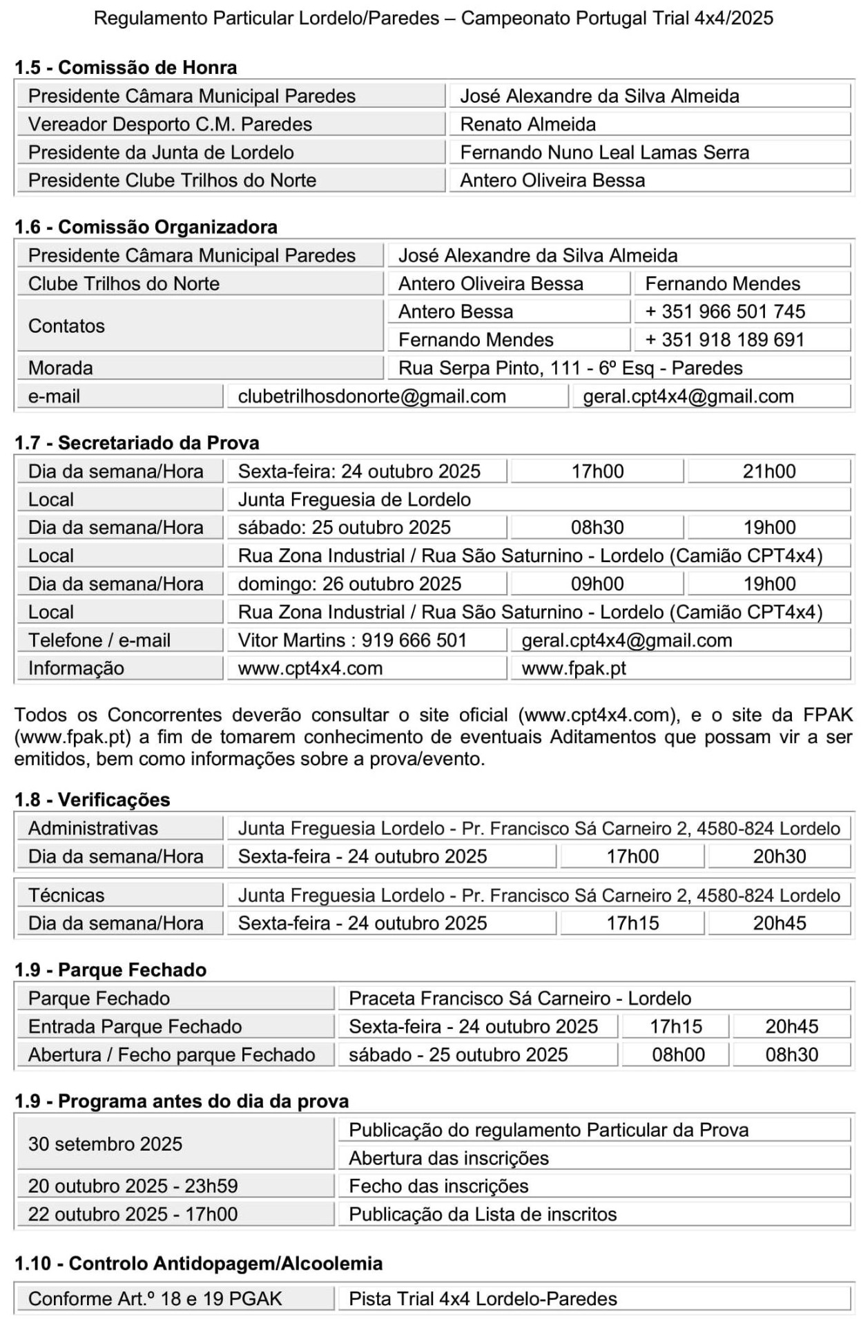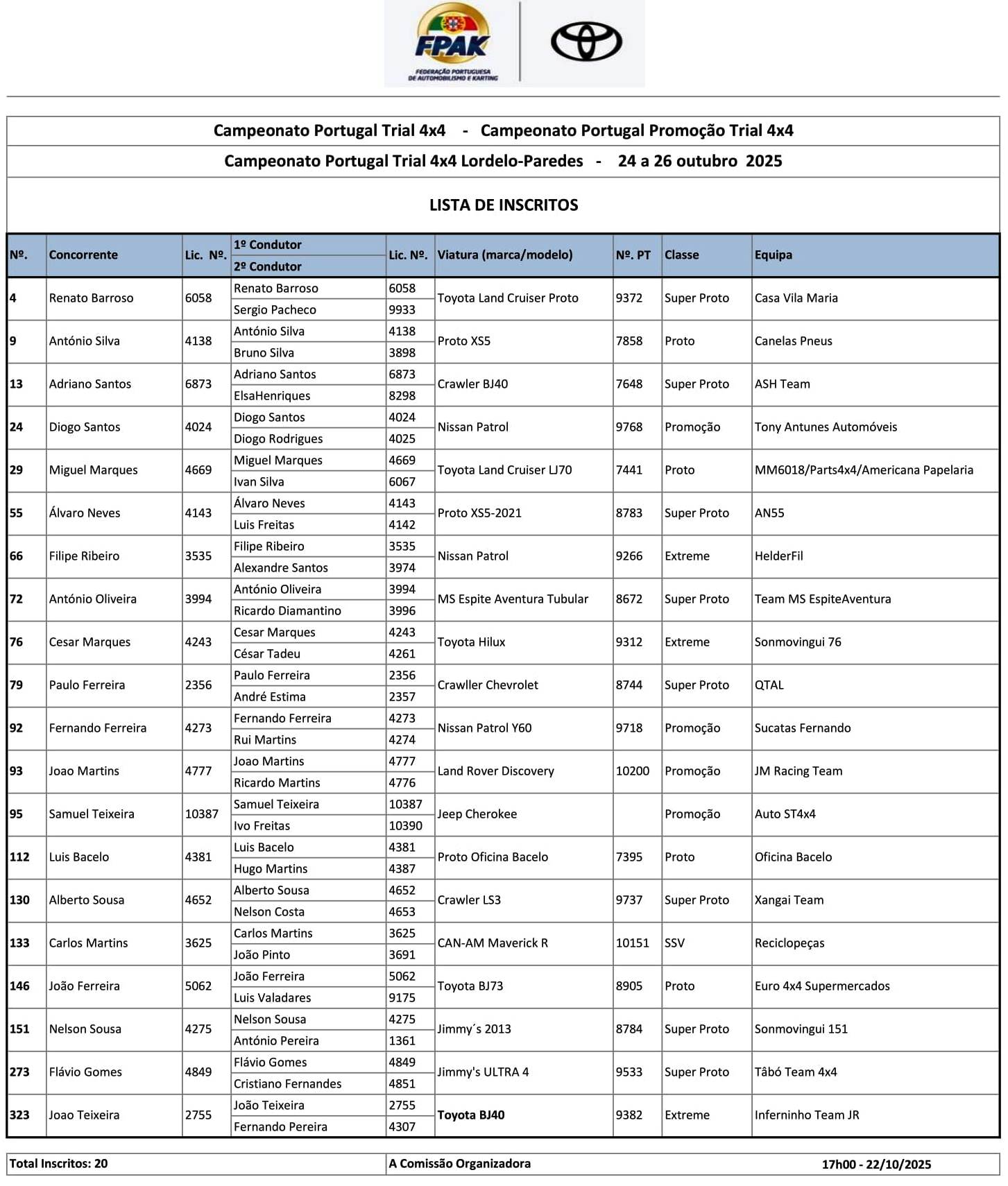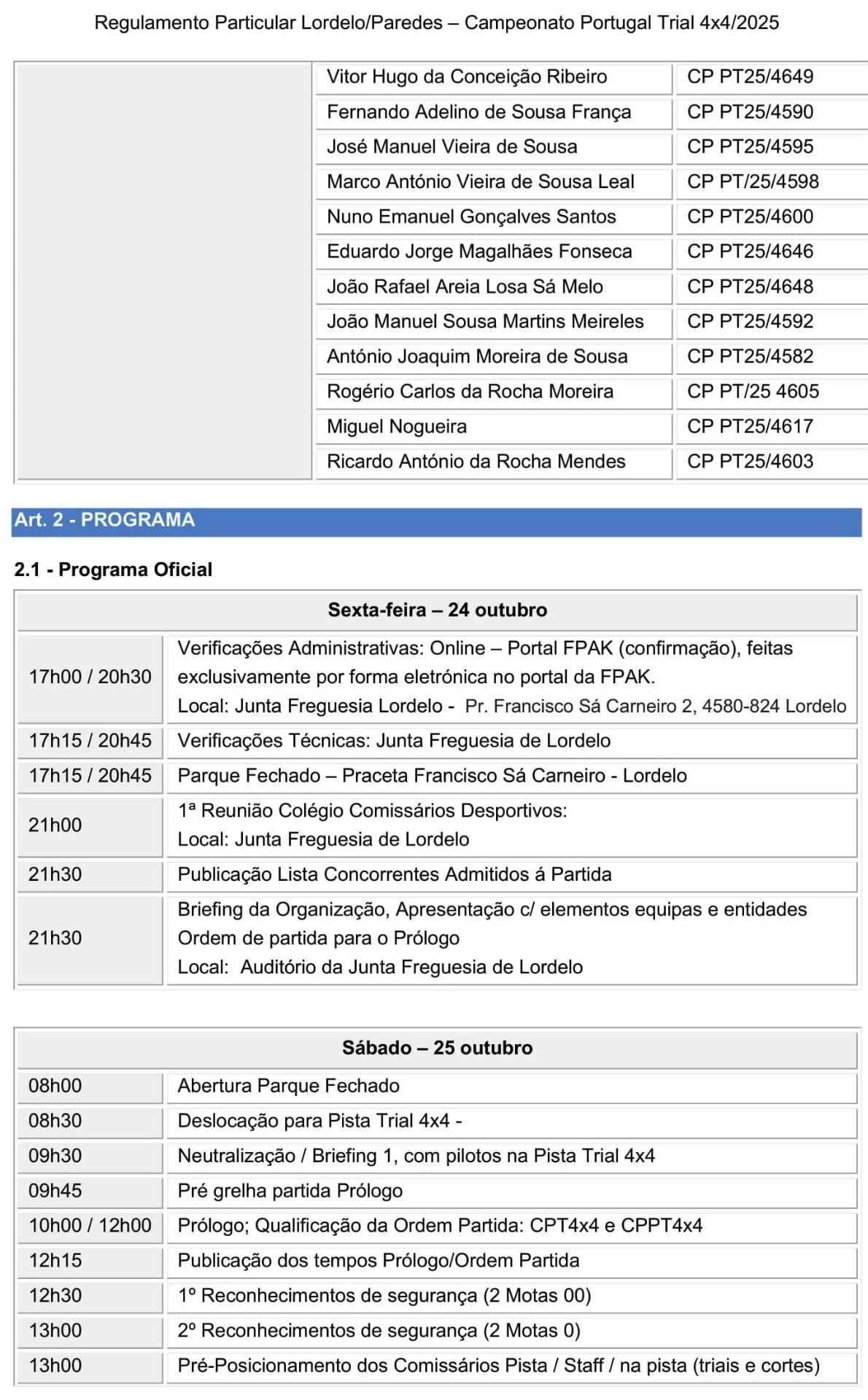 Lista de Inscritos + Aditamento N.º 1 + Regulamento Particular + Programa da Prova